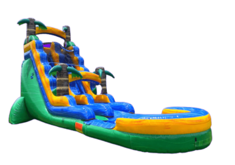 Bring the island vibes straight to your backyard with our 19-Foot Tropical Inflatable Water Slide—a vibrant, palm tree-lined adventure that’s perfect for soaking up the fun all season long.